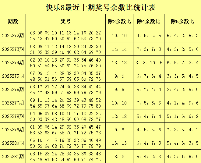 福彩快乐8第2025281期开奖回顾:08 15 23 24 28 34 35 36 38 43 45 49 51 53 64 67 69 71 74 75,其中奖号二区比为11:9,四区比为2:7:5:6,五区比为2:3:6:4:5,除2余数比为12:8,除4余数比为5:4:3:8,除5余数比为4:3:1:6:6。